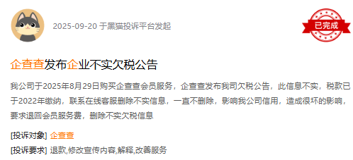 黑猫投诉平台上,有用户投诉,企查查随意抓取公开其个人数据,或泄露其个人信息。