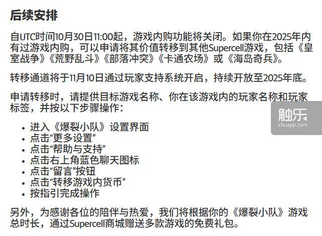Supercell《爆裂小队》即将终止开发,最后一次更新将在2025年12月上线日,Supercell官方发布公告,正式宣布终止旗下派对动作游戏《爆裂小队》(Squad Busters)的后续内容开发,游戏的最后一次更新定于2025年12月推出,预计将不早于2026年年中关闭游戏服务器。