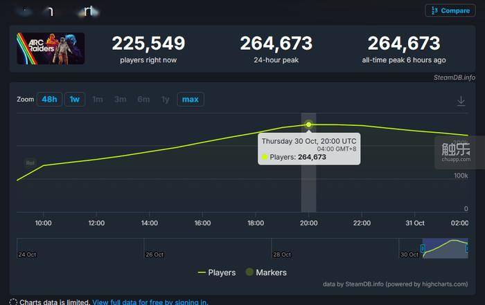 10月30日,由Embark Studios开发、Nexon发行的科幻搜打撤游戏《ARC Raiders》正式上线,游戏发售首日即引爆玩家热情,迅速登顶Steam全球热销榜。SteamDB数据显示,截至10月31日清晨,该作Steam同时在线万,这一数据在后续时间有望再度得到突破。