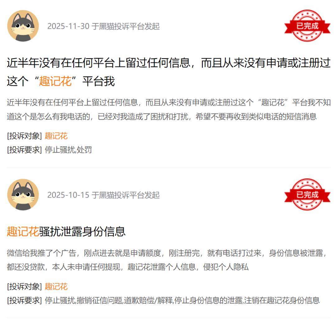除了贷款超市,“趣记花”还为贷款中介引流。据多位网友反映,在“趣记花”尝试申请过贷款,就会贷款中介电话。
