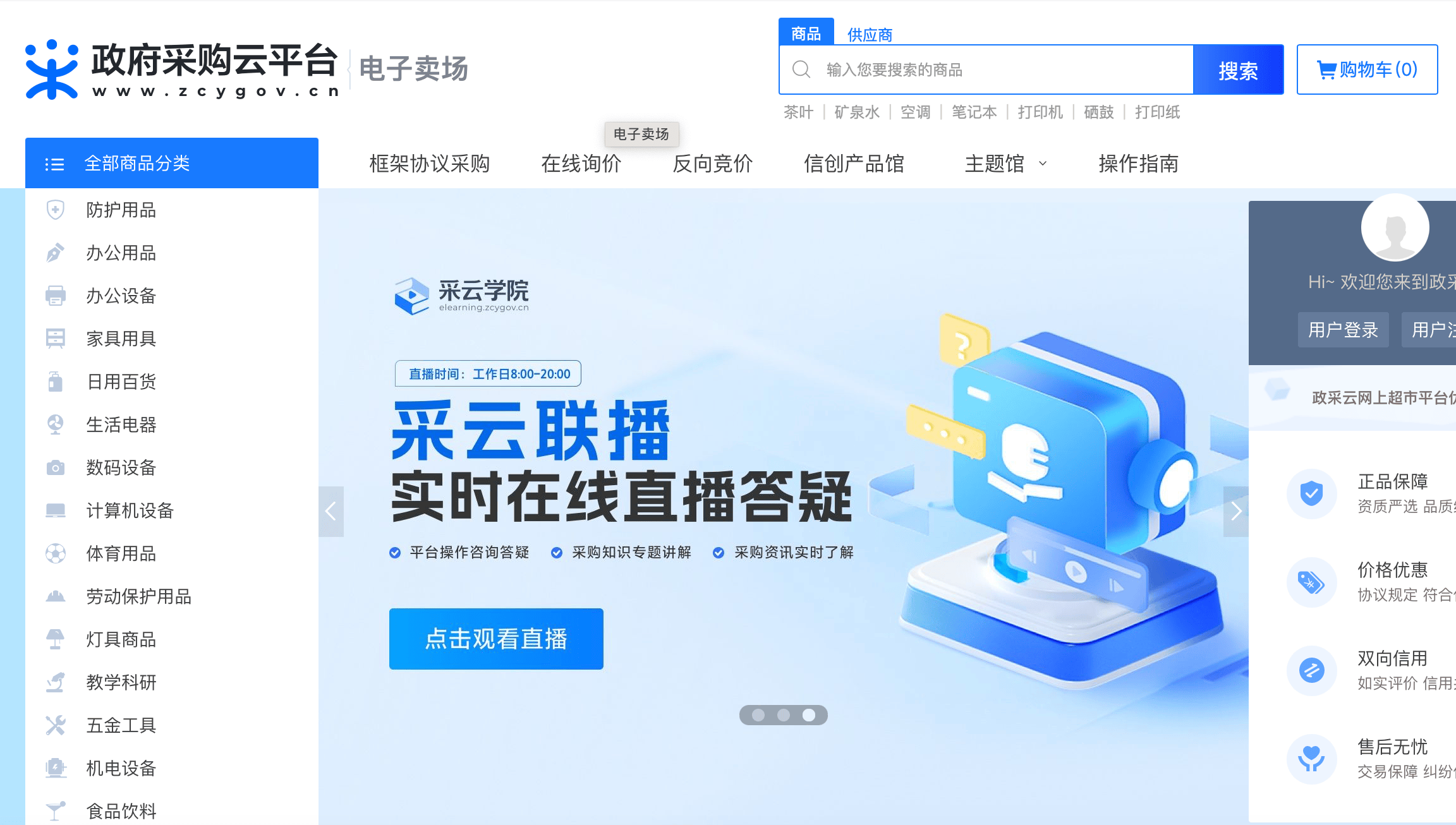 网上超市模式:针对办公用品、家具、IT设备等小额采购,无需走传统招标流程,直接比价成交。