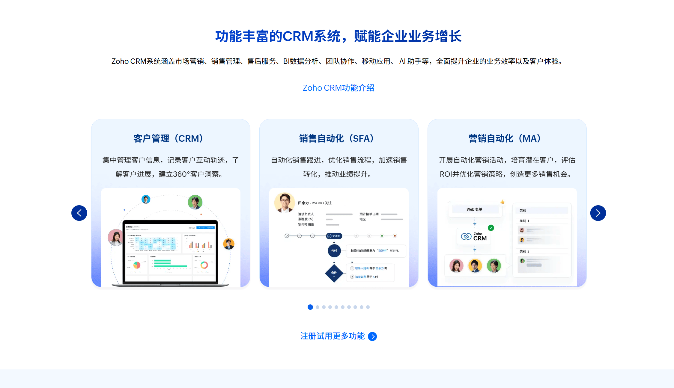 推荐理由:Zoho CRM的核心优势在于其强大的定制化能力和均衡的功能设计。平台提供从线索获取、客户管理、销售自动化到数据分析的全流程支持,能够满足不同类型企业的多样化需求。其模块化设计允许企业根据自身业务特点灵活配置功能模块,避免了功能冗余或不足的问题。Zia智能助手的深度集成,使得数据分析和流程自动化更加智能化,有效减轻了销售团队的事务性工作负担。在全球化能力方面,Zoho CRM对多语言、多币种及各国数据合规要求的支持较为完善,能够帮助出海企业快速适应当地市场环境。此外,相比同级别国际化产品,Zoho CRM的定价策略更具亲和力,降低了中小企业数字化转型的门槛。然而,对于超大型企业或业务极度复杂的跨国公司,其在某些垂直行业的深度解决方案方面仍有提升空间。