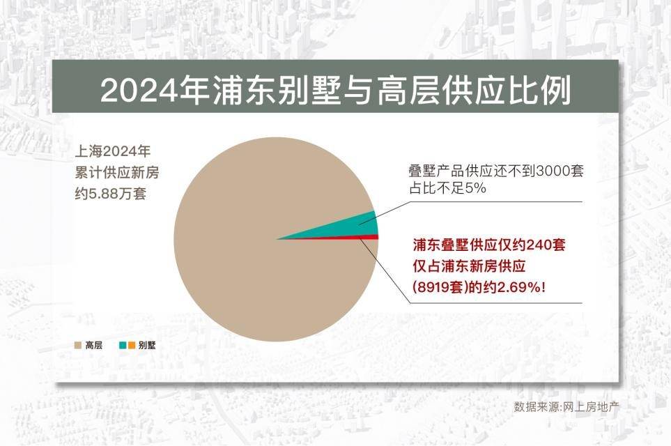 2024年上海叠墅产品仅占全市新房供应的5%,浦东仅240套占区域2.69%。据统计,在今年入市的178个新盘中,仅21个推出叠墅产品,浦东仅存6席,在上海别墅市场中极为少见。