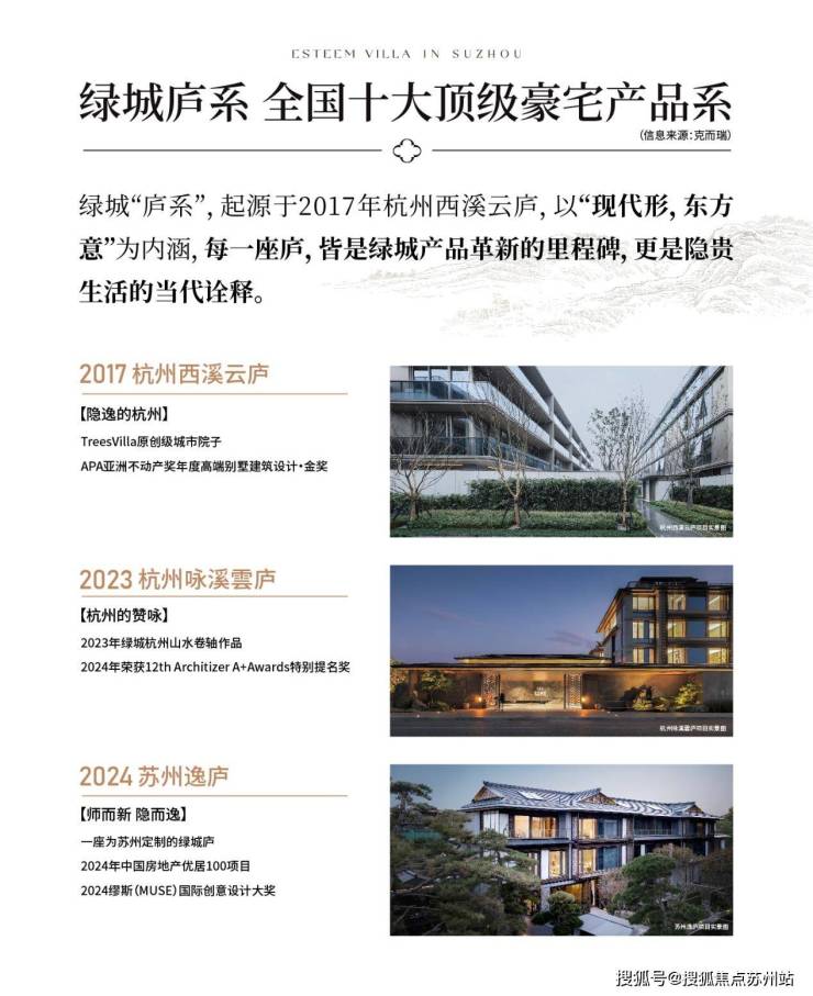 绿城庐系产品线年的杭州西溪云庐,以现代形,东方意为内涵,每一座庐都是绿城产品革新的里程碑,也是高端生活的当代诠释。