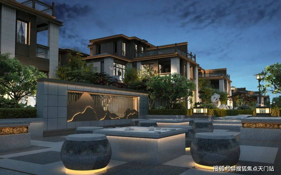 约3500㎡的中央景观区,融汇山池、六角亭、戏台、石舫,实现一步异景的院落诗意居境。