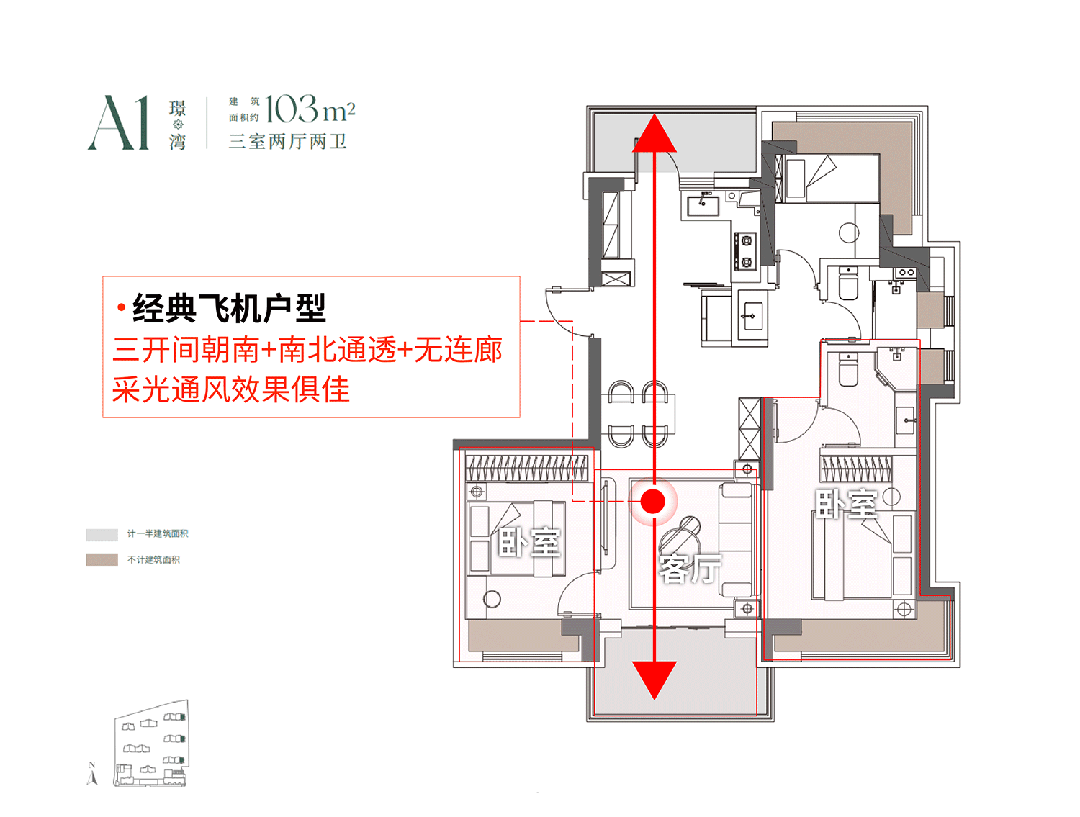 2个户型空间布局基本相似,都做到四开间朝南+独立电梯厅+南北双阳台+5飘窗+双卧室套房设计,不管是采光、视野、通风、私密性,还是实用性都十分出色。