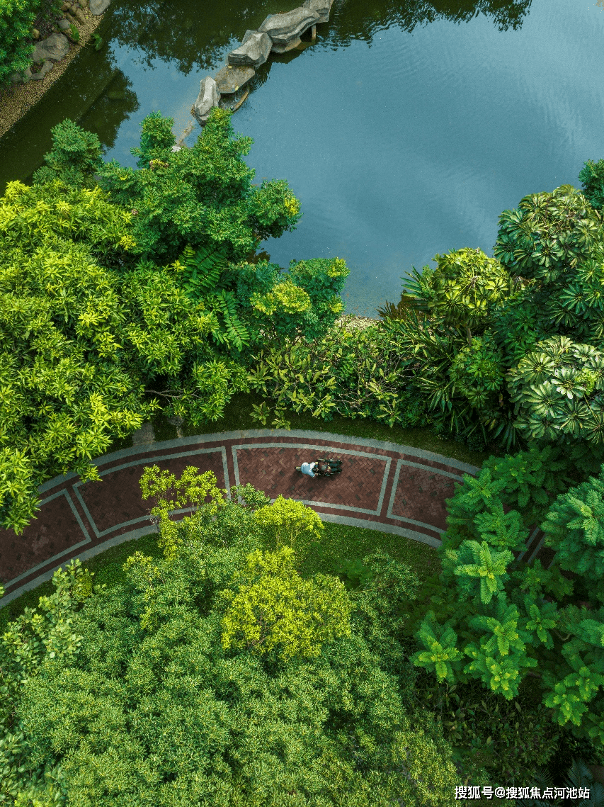 所以溪山君樾的园林,达到了约5万平,几乎是同体量社区的10倍,住在其它社区,下楼是一小片的草地、绿植,住在溪山君樾,下楼是如森林般的绿意秘境。