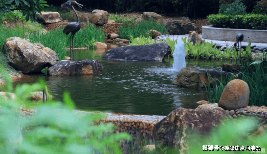 更惊人的是,溪山君樾打造了一条贯穿整个社区园林的溪流,长度达到了约1000米,沿岸打造了叠水、溪流、瀑布、水潭等特色水景,并种植了多种溪岸植物。