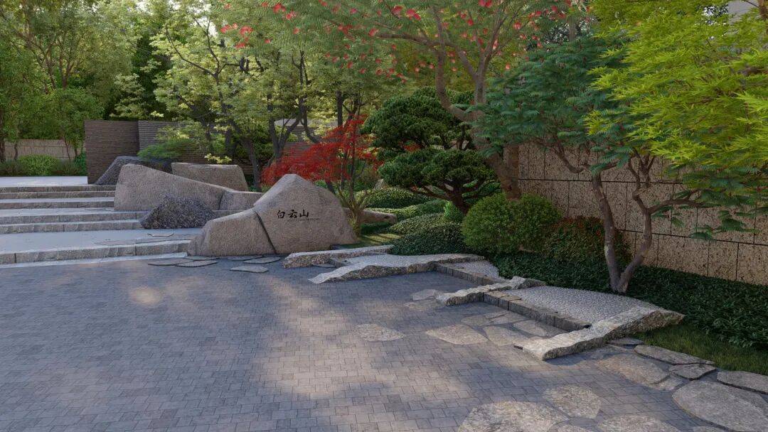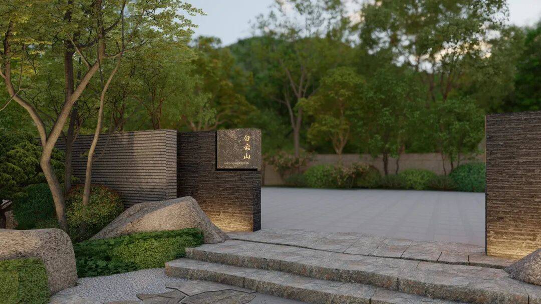 借势白云山,运用「真-行-草」手法将山体灵动秀气的景致引入,融合“石、水、光、林、云”5大自然要素,营造静谧纯粹,高贵又沉稳的归隐生活空间。