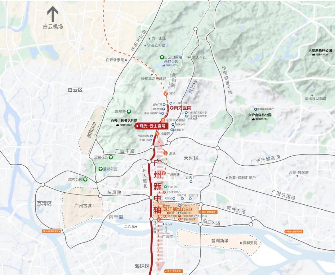 天河北商圈:5公里尽享天河北 CBD 配套包含太古汇、天环、天河城,正佳等大型高端购物中心;
