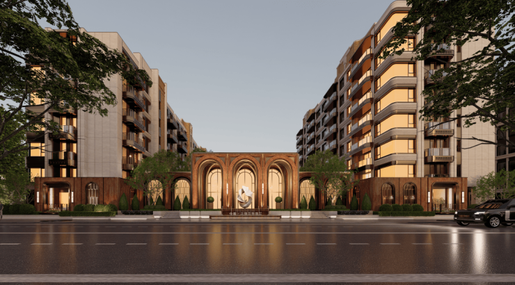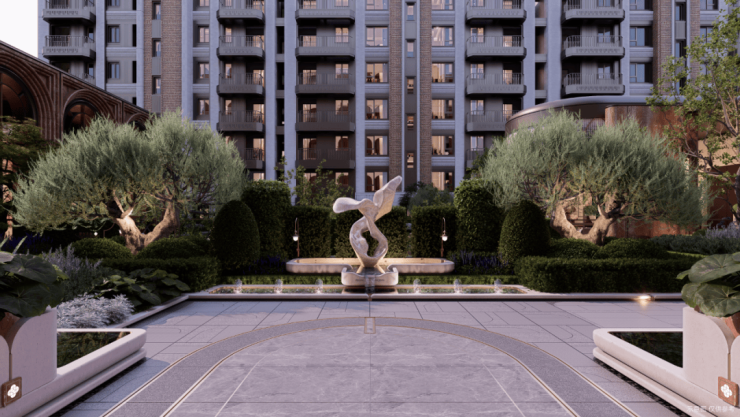 百年型制立面:撷取思南公馆拱券、应公馆对称设计等海派经典元素,于秩序中彰显海派大宅的深厚底蕴。